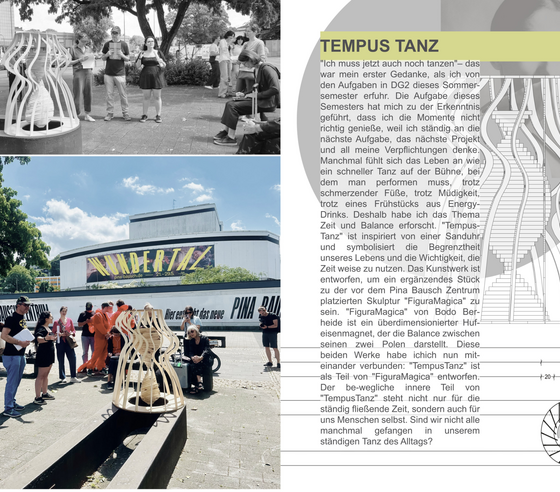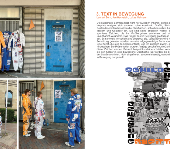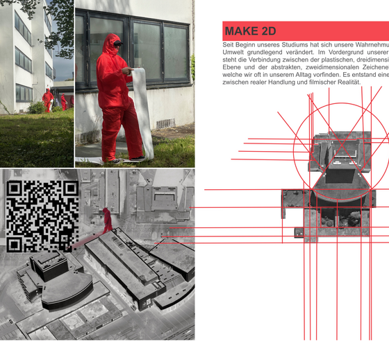 Bei der freien Abschlussarbeit, die sowohl auf der Recherche über das Objekt und den Ort basiert, als auch Untersuchung und Intervention im städtischen Raum mit einbezieht, fließen die erworbenen Erfahrungen aus dem zwei- und dreidimensionalen Bereich zusammen.