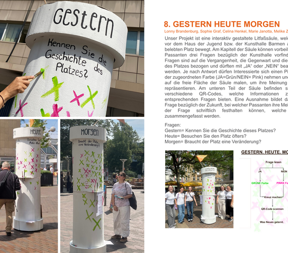 Dabei sind es gerade die persönlichen Stellungnahmen, Fragen, und das Entdecken eigener Sichtweisen, die von den Studierenden zu ihrem Studienort formuliert werden sollen.